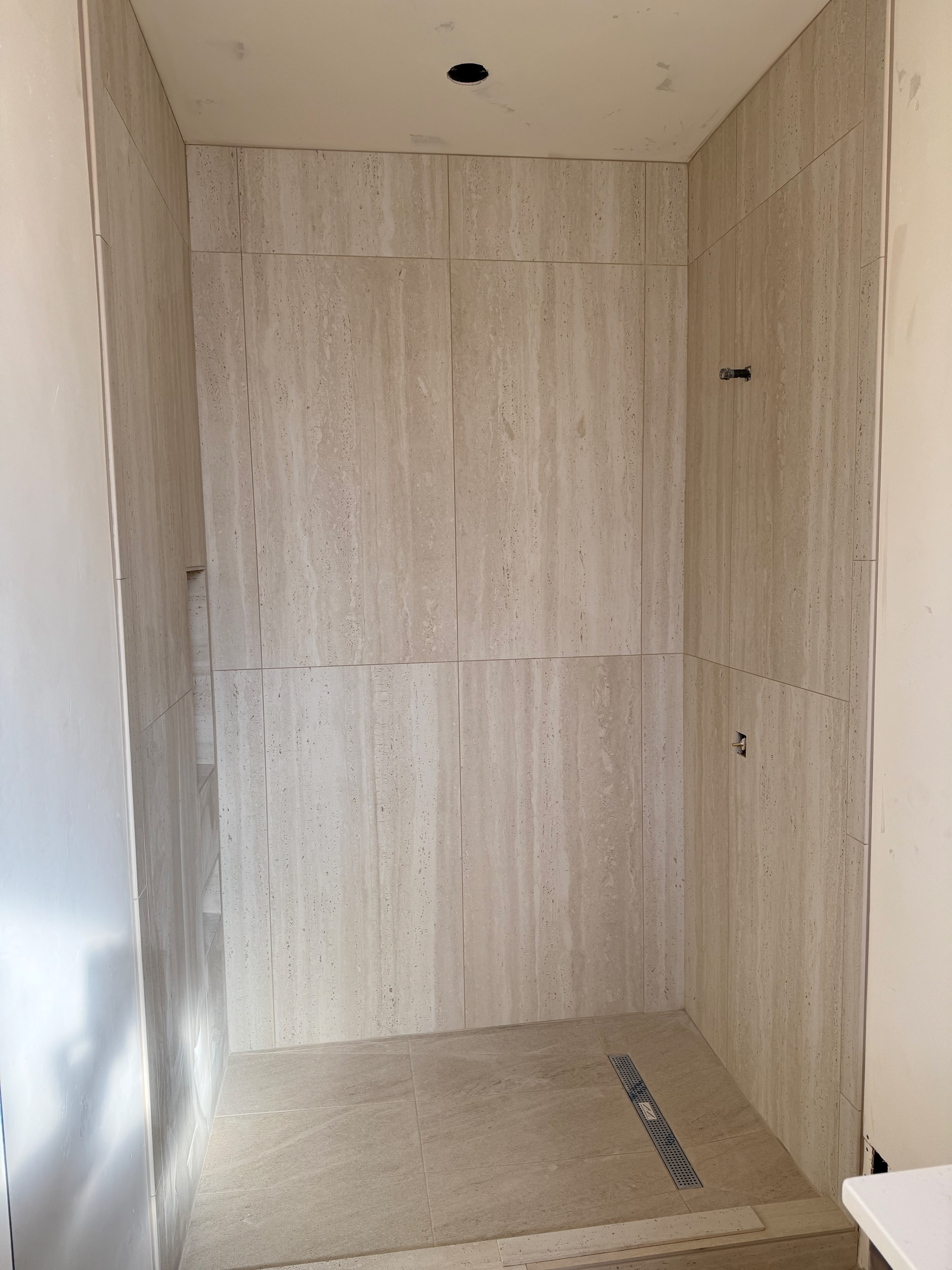 The tile guys did excellent work. I’m glad we paid a bit extra to get narrower grout (1/8" instead of 1/4"), money well spent.